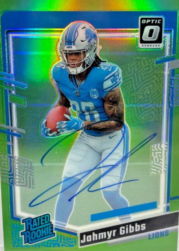 Jahmyr Gibbs 2023 Optic #236 Rated Rookie Autographs - Green /5 RAW Price Guide