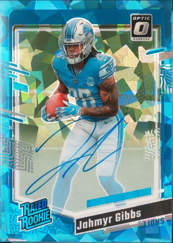 Jahmyr Gibbs 2023 Optic #236 Rated Rookie Autographs - Ice /15 RAW Price Guide