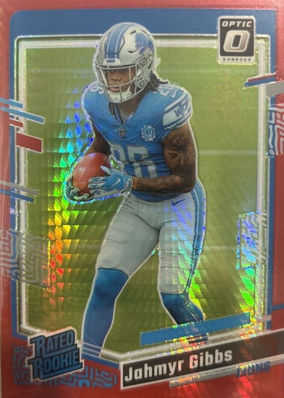 2023 Donruss Optic #236 Jahmyr Gibbs Red Hyper RC