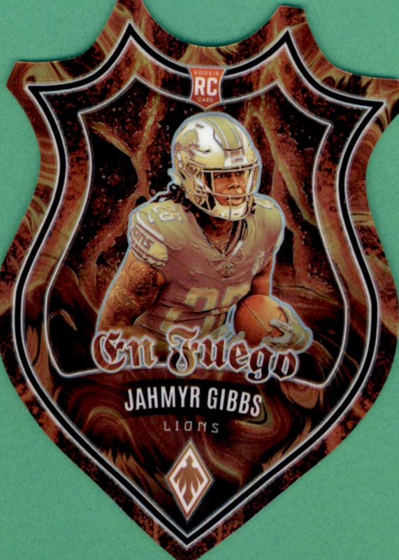 JAHMYR GIBBS 2023 PANINI PHOENIX #4 RC ROOKIE EN FUEGO DIE CUT PRIZMS LIONS SP