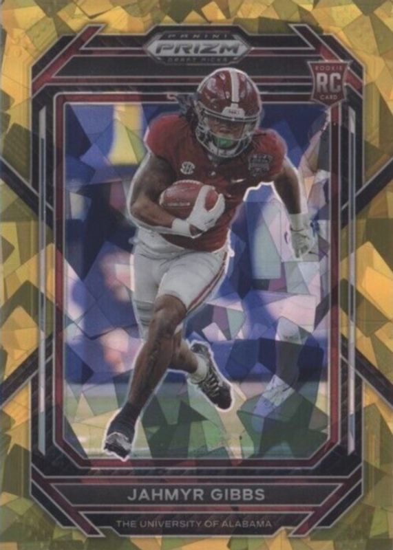 2023 PANINI PRIZM DRAFT PICKS JAHMYR GIBBS GOLD CRACKED ICE 116 RC ALABAMA LIONS