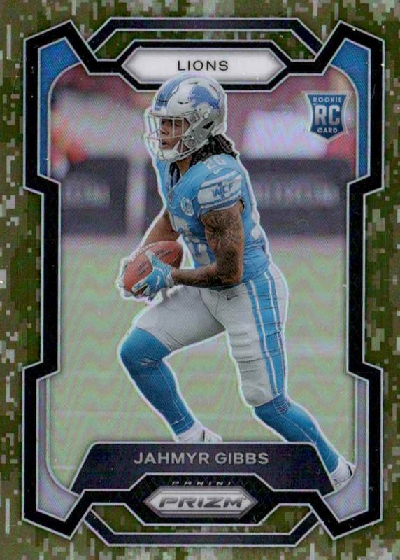 Jahmyr Gibbs 2023 Prizm #331 Forest Camo /15 Rookie RAW Price Guide