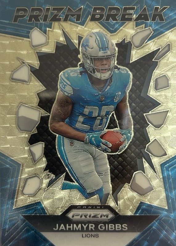 The Jahmyr Gibbs 2023 Prizm #PB-5 Prizm Break - Gold Vinyl /5 Rookie card in Raw condition has not changed in price in the last 30 days and was last sold for $550.00 .