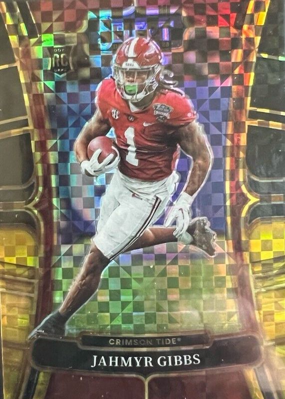 This card is 1 of 56 Jahmyr Gibbs' card variations in the 2023 Select Draft Picks set being tracked by Sports Card Investor, including Concourse, Field Level, Concourse Blue, Concourse Gold Lazer, and Concourse Green Lazer.