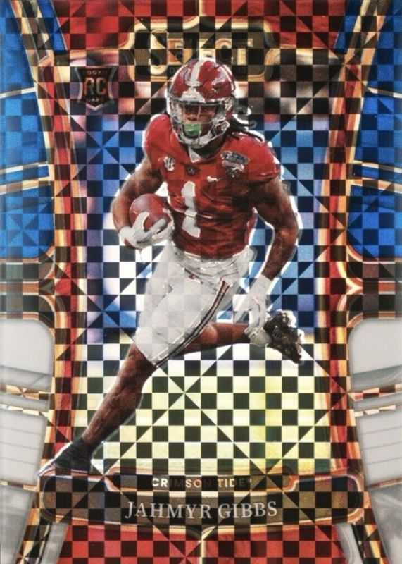 This card is 1 of 56 Jahmyr Gibbs' card variations in the 2023 Select Draft Picks set being tracked by Sports Card Investor, including Concourse, Field Level, Concourse Blue, Concourse Gold Lazer, and Concourse Green Lazer.
