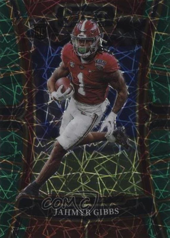 The Jahmyr Gibbs 2023 Select Draft Picks #10 Concourse Green Lazer Rookie card in Raw condition has not changed in price in the last 30 days and was last sold for $2.76 .