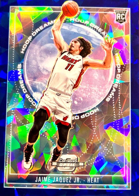 The Jaime Jaquez Jr. 2023 Contenders Optic #18 Hoop Dreams - Blue Cracked Ice /75 Rookie card in Raw condition has moved down -$5.51 (-73.5%) in the last 30 days and was last sold for $1.99 .