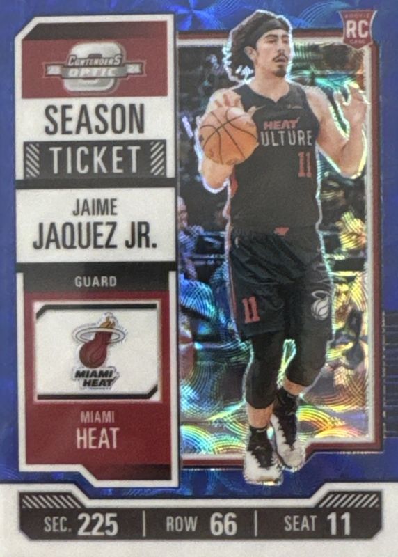 Jaime Jaquez Jr. 2023 Contenders Optic #67 Season Ticket - International Blue /45 Rookie RAW Price Guide