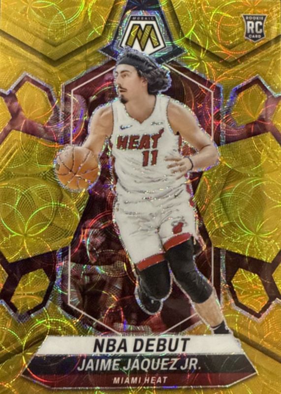 The Jaime Jaquez Jr. 2023 Mosaic #267 NBA Debut - Gold /10 Rookie card in Raw condition has not changed in price in the last 30 days and was last sold for $30.51 .