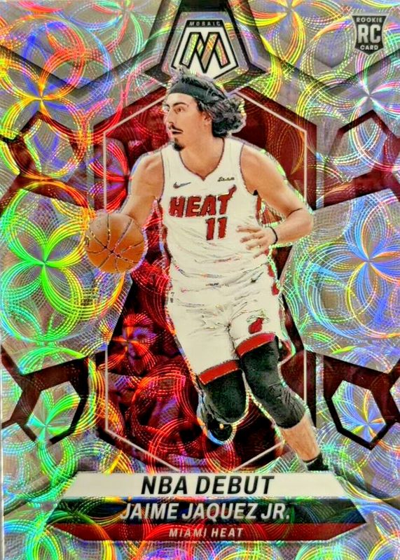 The Jaime Jaquez Jr. 2023 Mosaic #267 NBA Debut - International Rookie card in Raw condition has not changed in price in the last 30 days and was last sold for $0.99 .