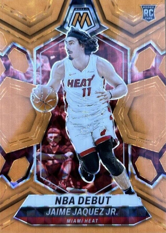 The Jaime Jaquez Jr. 2023 Mosaic #267 NBA Debut - Orange Fluorescent /25 Rookie card in Raw condition has not changed in price in the last 30 days and was last sold for $40.00 .