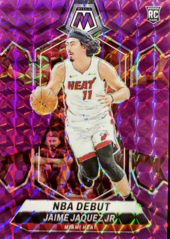The Jaime Jaquez Jr. 2023 Mosaic #267 NBA Debut - Purple /99 Rookie card in Raw condition has not changed in price in the last 30 days and was last sold for $6.50 .