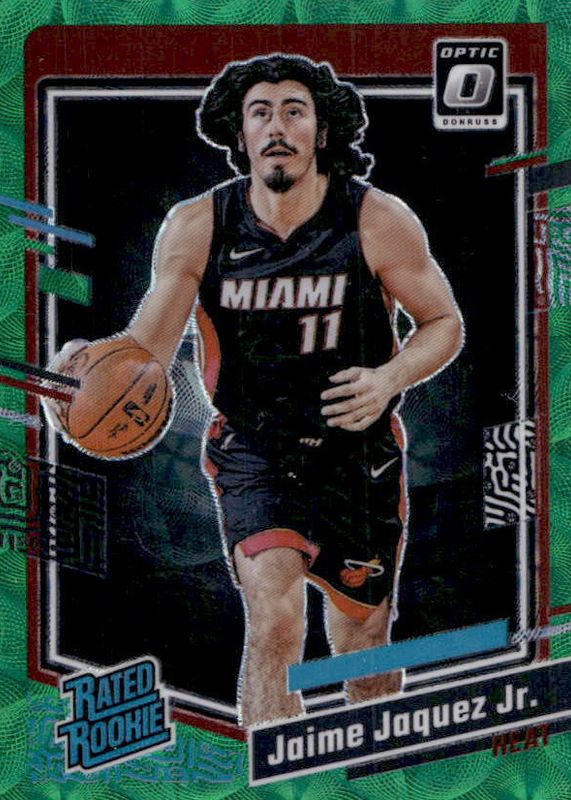 The Jaime Jaquez Jr. 2023 Optic #216 International Green /65 Rookie card in Raw condition has not changed in price in the last 30 days and was last sold for $4.00 .