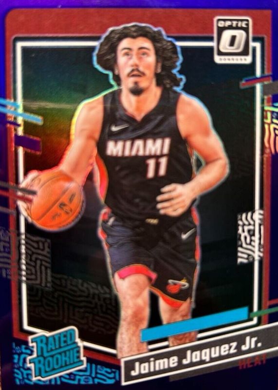 2023-24 DONRUSS OPTIC JAIME JAQUEZ JR. RATED ROOKIE PURPLE MIAMI HEAT 216