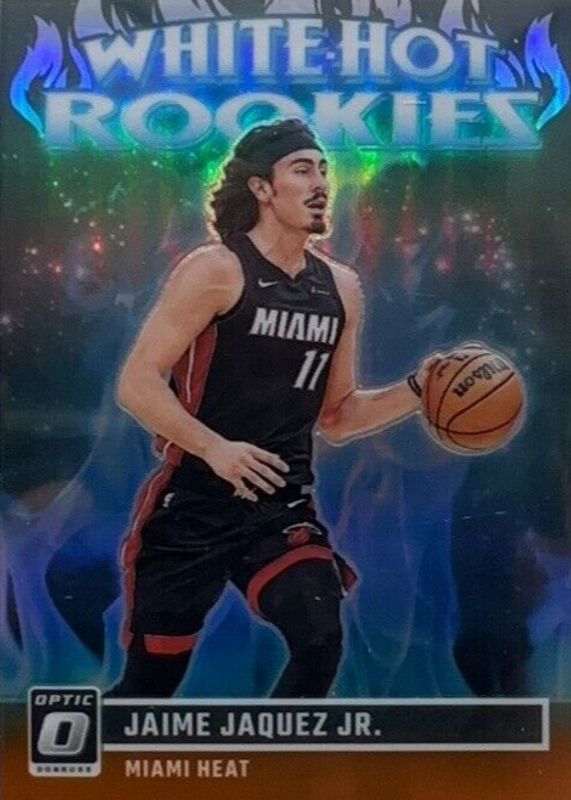 The Jaime Jaquez Jr. 2023 Optic #13 White Hot Rookies - Orange /39 card in Raw condition has not changed in price in the last 30 days and was last sold for $14.99 .