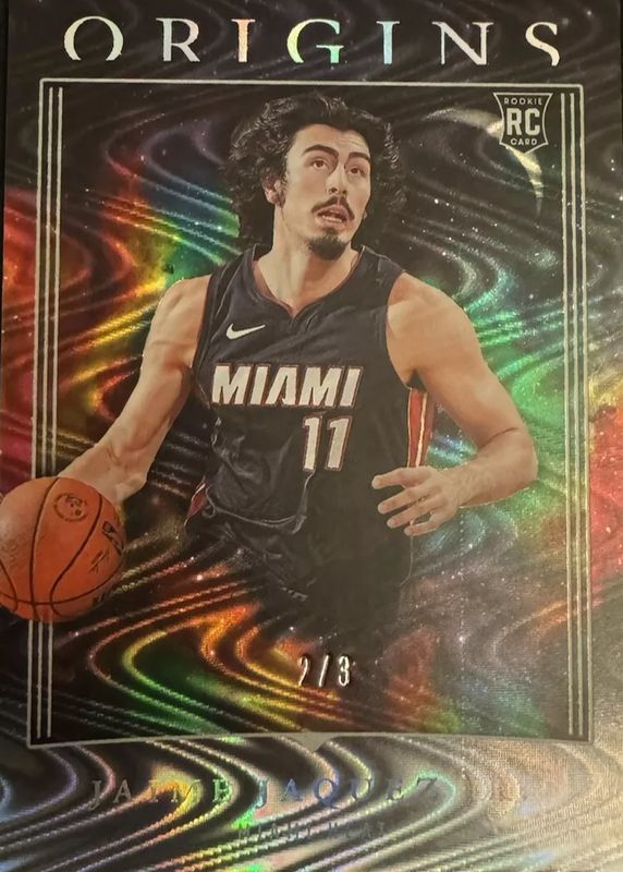 The Jaime Jaquez Jr. 2023 Origins #33 FOTL Swirl /3 Rookie card in Raw condition has not changed in price in the last 30 days and was last sold for $112.50 .