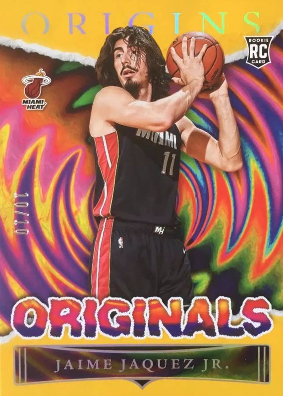 The Jaime Jaquez Jr. 2023 Origins #18 Originals - Gold /10 Rookie card in Raw condition has not changed in price in the last 30 days and was last sold for $66.00 .