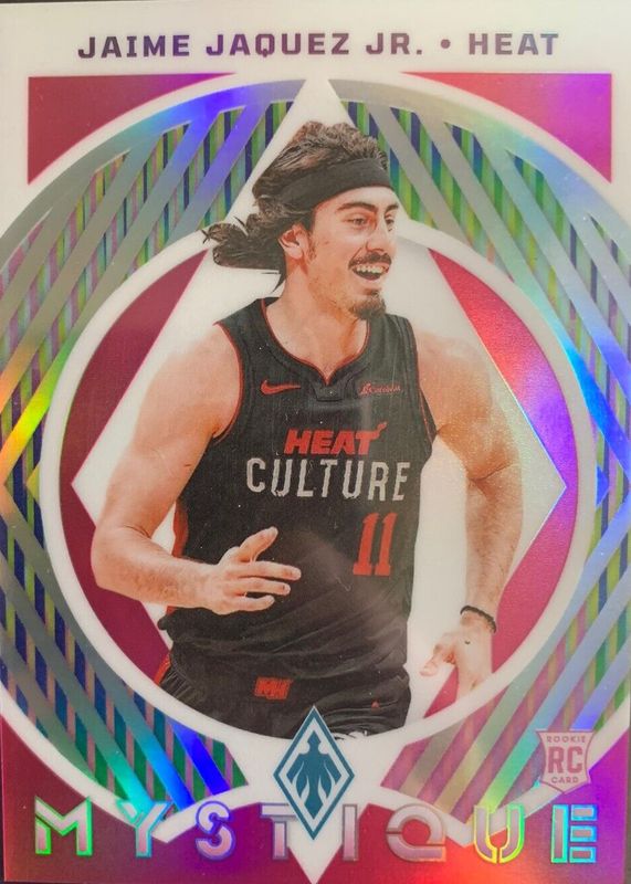 The Jaime Jaquez Jr. 2023 Phoenix #18 Mystique - Pink /99 Rookie card in Raw condition has not changed in price in the last 30 days and was last sold for $5.72 .