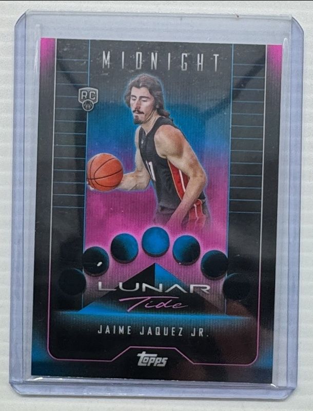 The Jaime Jaquez Jr. 2023 Topps Midnight #LT-15 Lunar Tide Rookie card is 1 of 54 Jaime Jaquez Jr.'s card variations in the 2023 Topps Midnight set being tracked by Sports Card Investor, including Base, Moon Beam, Zodiac, Morning /149, and Twilight /99.