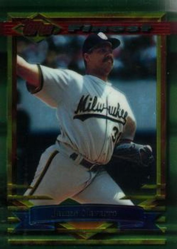 The Jaime Navarro 1994 Topps Finest #129 Base card is 1 of 2 Jaime Navarro's card variations in the 1994 Topps Finest set being tracked by Sports Card Investor, including Refractor.