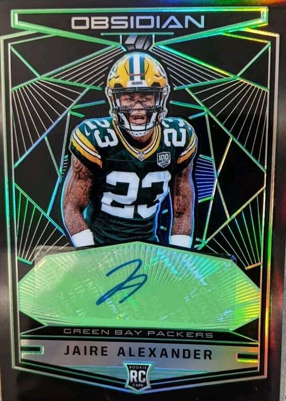 The Jaire Alexander 2018 Obsidian #RKA-JA Rookie Autographs - Electric Etch Green (/25) card in Raw condition has not changed in price in the last 30 days and was last sold for $90.00 .