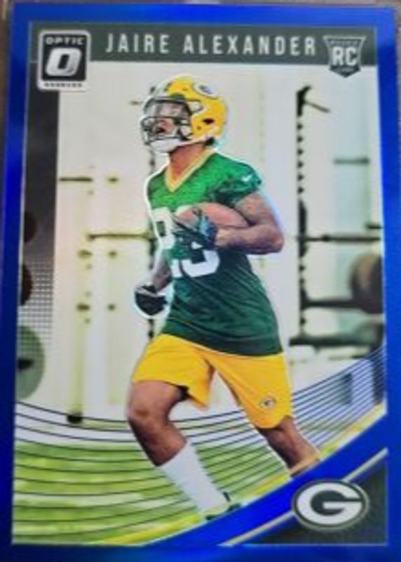The Jaire Alexander 2018 Optic #109 Blue /149 Rookie card in Raw condition has not changed in price in the last 30 days and was last sold for $1.31 .