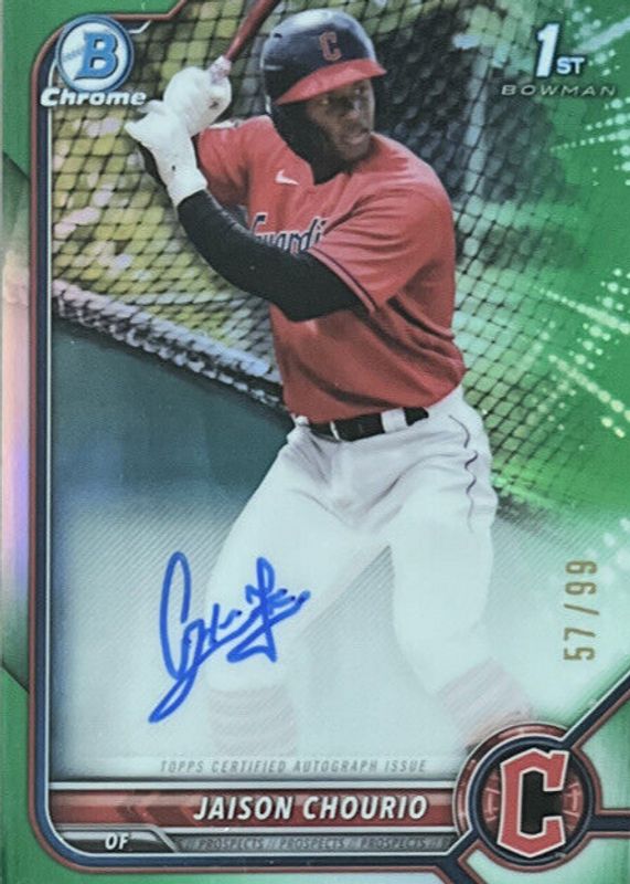 2022 Bowman Chrome Jaison Chourio 1st Prospect Green Refractor Auto #52/99