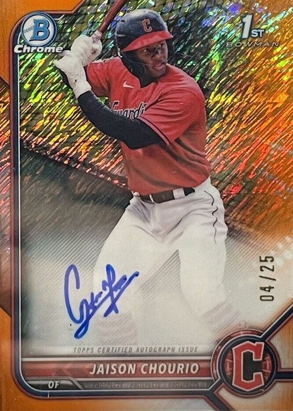 Auctions Ending Soon for Jaison Chourio 2022 Bowman Chrome #CPA-JCO Prospect Auto - Orange Shimmer Refractor /25 (1st) RAW
