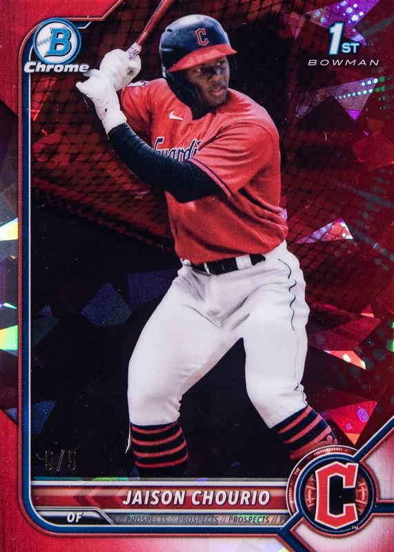Auctions Ending Soon for Jaison Chourio 2022 Bowman Chrome Sapphire Edition #BCP-174 Prospects - Red /5 (1st) RAW