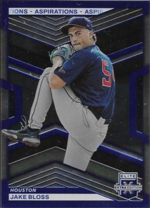 The Jake Bloss 2023 Elite Extra Edition #2 Aspirations Blue /349 card is 1 of 39 Jake Bloss' card variations in the 2023 Elite Extra Edition set being tracked by Sports Card Investor, including Base, Pink, Signatures, Status Green /499, and Signatures die-cut /399.