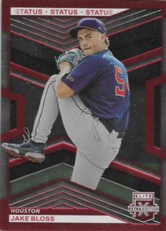 The Jake Bloss 2023 Elite Extra Edition #2 Status Red /199 card is 1 of 39 Jake Bloss' card variations in the 2023 Elite Extra Edition set being tracked by Sports Card Investor, including Base, Pink, Signatures, Status Green /499, and Signatures die-cut /399.