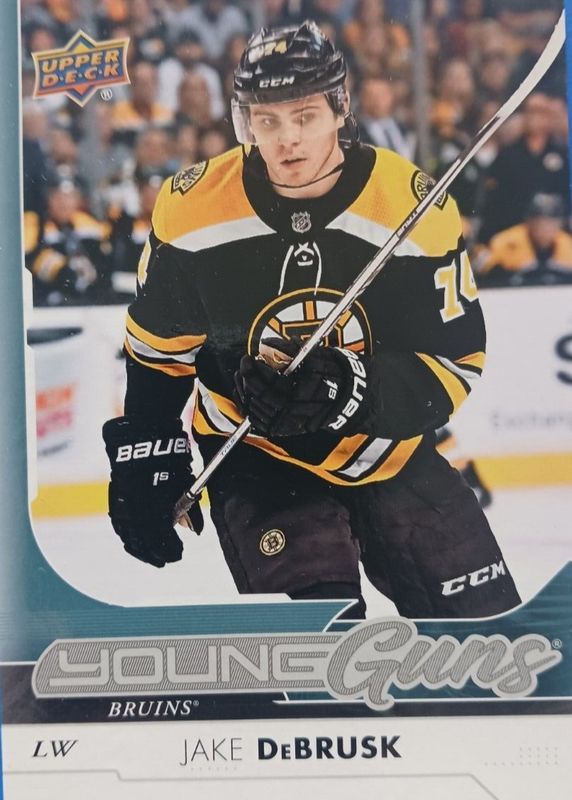 This card is 1 of 8 Jake DeBrusk's card variations in the 2017 Upper Deck set being tracked by Sports Card Investor, including Young Guns Base, Young Guns - Clear Cut, Young Guns - Gold Rainbow Foil, Young Guns - Silver Foil, and Young Guns - UD Exclusives /100.