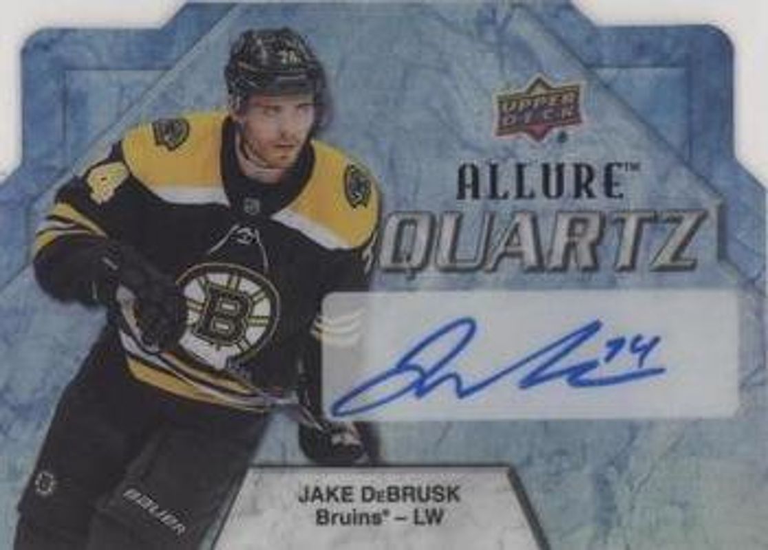The Jake DeBrusk 2019 Upper Deck Allure #AQ-DE Quartz Autographs Blue /5 card is 1 of 2 Jake DeBrusk's card variations in the 2019 Upper Deck Allure set being tracked by Sports Card Investor, including Quartz Autographs.