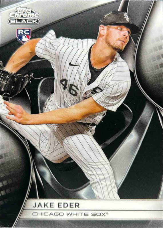 Jake Eder's Baseball cards are available in at least 7 sets. Jake Eder's biggest 7-day price movers are 2025 Topps Chrome Black #77 Base, 2025 Topps Chrome Black #77 Blue Lava Refractor /150, and 2025 Topps Chrome Black #77 White Refractor /10.