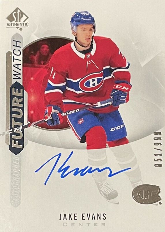 2020-21 Sp Authentic Future Watch Jake Evans Rookie Auto 656/999 Montreal