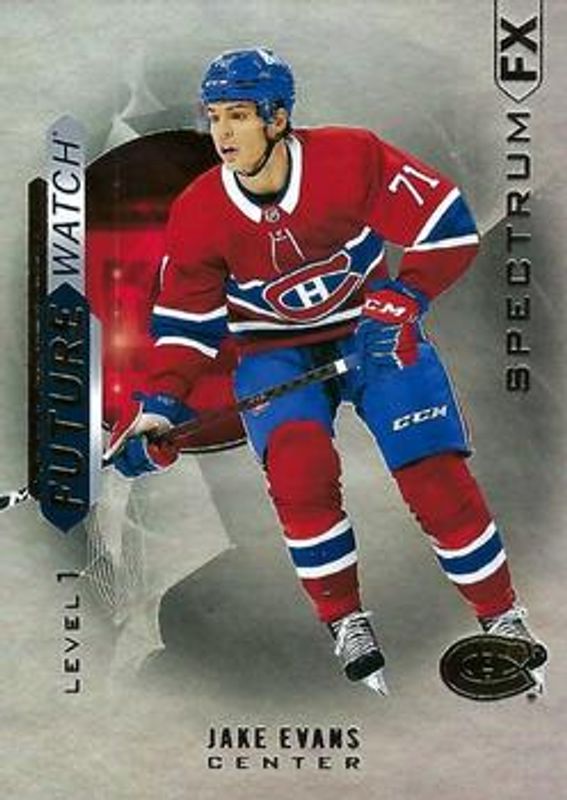 The Jake Evans 2020 SP Authentic #S-41 Spectrum FX Rookie card is 1 of 10 Jake Evans' card variations in the 2020 SP Authentic set being tracked by Sports Card Investor, including Base /999, Black Gold Ink, Future Watch Acetate, 2020 Upper Deck Young Guns Acetate, and Future Watch Auto /999.
