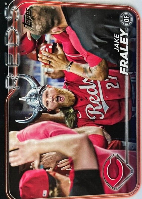 This card is 1 of 2 Jake Fraley's card variations in the 2024 Topps set being tracked by Sports Card Investor, including Team Color Border Variation /(SSP).