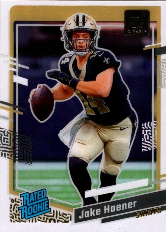 The Jake Haener 2023 Clearly Donruss #63 Gold Rookie card in Raw condition has not changed in price in the last 30 days and was last sold for $1.49 .