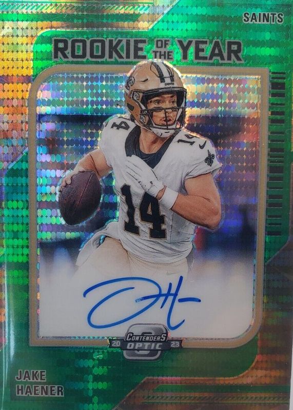 2023 Contenders Optic Jake Haener Green Pulsar Rookie Of The Year Auto /30