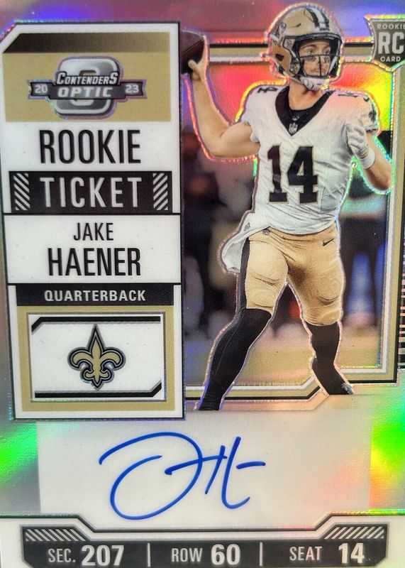 2023 Contenders Optic Jake Haener RC Silver Rookie Ticket Auto #113b Saints