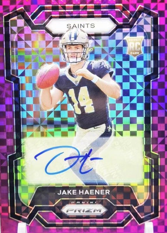 Jake Haener 2023 Panini Prizm 44/49 NFL Purple Power Auto RC Saints #374