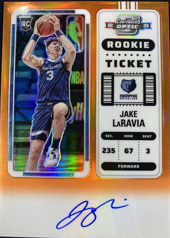 2022-23 Contenders Optic Orange Ticket Jake LaRavia Grizzlies RC Rookie AUTO /25
