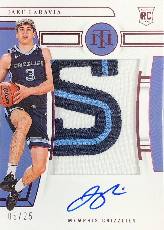 This card is 1 of 10 Jake LaRavia's card variations in the 2022 National Treasures set being tracked by Sports Card Investor, including Rookie Patch Auto /99, Rookie Patch Auto - Red /75, Rookie Patch Auto - Bronze /49, Rookie Patch Auto - Gold FOTL /24, and Rookie Patch Auto - Gold /10.