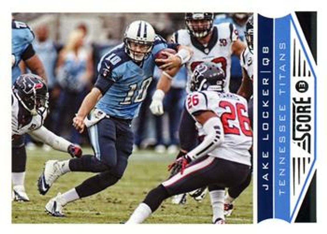 The Jake Locker 2013 Score #207 Base card is 1 of 24 Jake Locker's card variations in the 2013 Score set being tracked by Sports Card Investor, including #251 Base, #251 Scorecard, #207 Scorecard, #207 Showcase /99, and #251 Showcase /99.