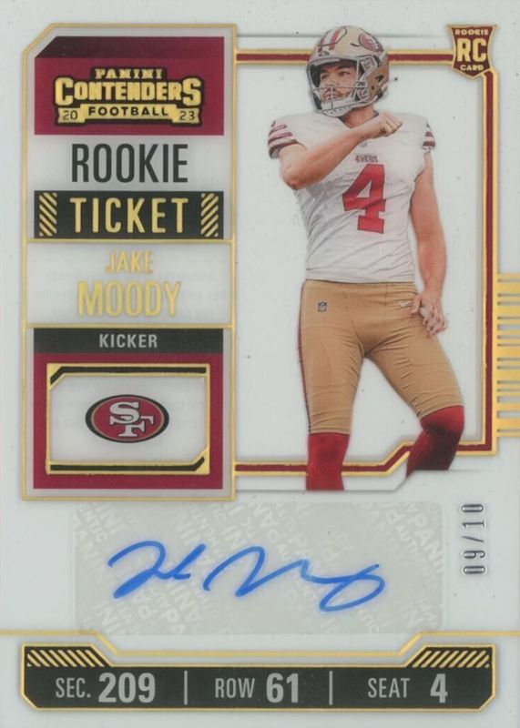 Jake Moody 2023 Contenders #200 Rookie Ticket Auto - Clear Ticket /10 RAW Price Guide