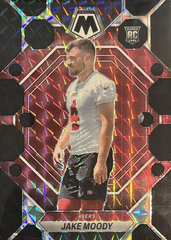 This card is 1 of 41 Jake Moody's card variations in the 2023 Mosaic set being tracked by Sports Card Investor, including Base, Choice Red & Green, Green, Mosaic, and No Huddle.