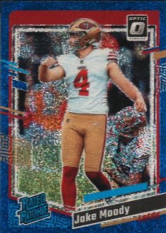 🔥2023 Donruss Optic #289 JAKE MOODY Blue GLITTER Prizm Rated Rookie SSP 49ers