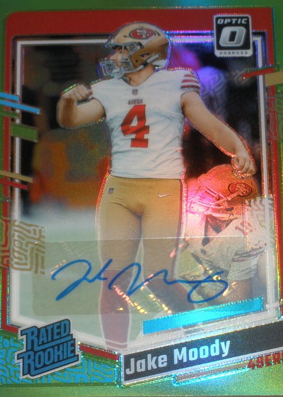 Auctions Ending Soon for Jake Moody 2023 Optic #289 Rated Rookie Autographs - Green /5 RAW