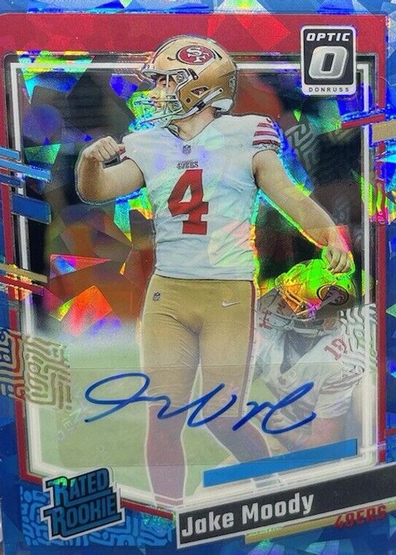 Auctions Ending Soon for Jake Moody 2023 Optic #289 Rated Rookie Autographs - Ice /15 RAW