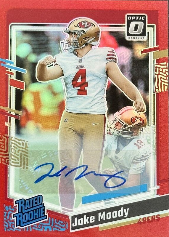Best Prices Available For Sale of Jake Moody 2023 Optic #289 Rated Rookie Autographs - Red /75